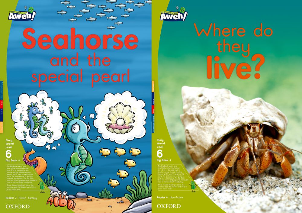 Seahorse and the special pearl Where do they live? is the fourth Big Book of Level 6 in the Aweh! English reading scheme. Aweh! is a graded reading scheme that will awaken any child’s imagination as they join Mama Africa in saving the world’s stories by charging the Umthombo; the well of stories. The bright and colourful artwork provides a child-centred learning opportunity that integrates both the weekly Mathematics concept and the Life Skills topic. The inside cover identifies the key vocabulary and phonic focus for every Reader. The back inside cover offers a fun writing activity to consolidate the child’s understanding and to link reading to writing.