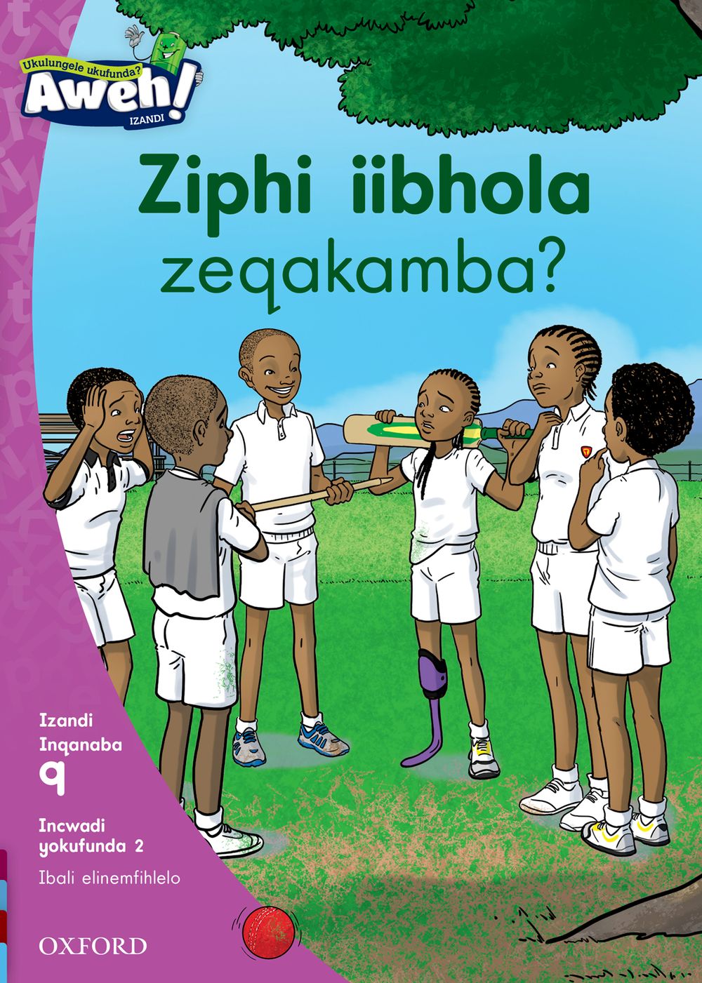 “Ziphi iibhola zeqakamba? is the second Reader of Level 9 in the Aweh! isiXhosa reading scheme. Aweh! is a graded reading scheme that will awaken any child’s imagination as they join Mama Africa in saving the world’s stories by charging the Umthombo; the well of stories. The bright and colourful artwork provides a child-centred learning opportunity that integrates both the weekly Mathematics concept and the Life Skills topic. The inside cover identifies the key vocabulary and phonic focus for every Reader. The back inside cover offers a fun writing activity to consolidate the child’s understanding and to link reading to writing.”