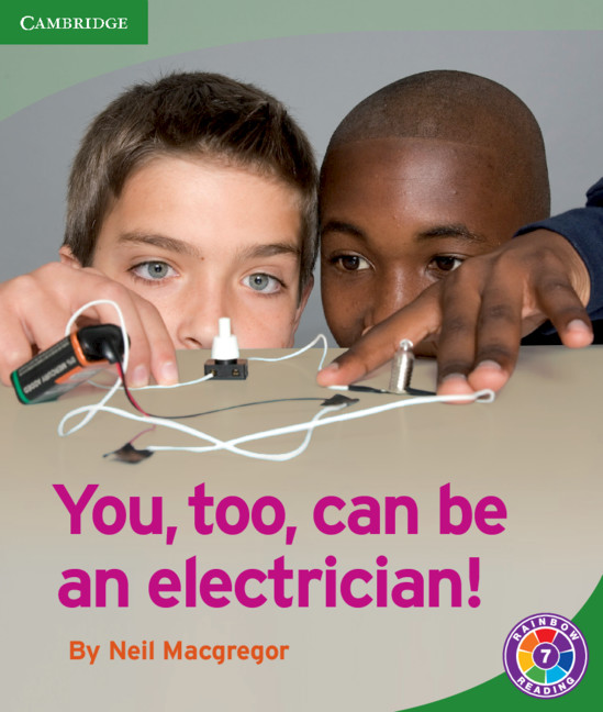 You, too, can be an electrician!’ is about how to fix basic electrical problems in the home. The book explains how electricity works, and covers topics such as safety issues, changing a light bulb, joining wires, installing a switch, and wiring a dollhouse.